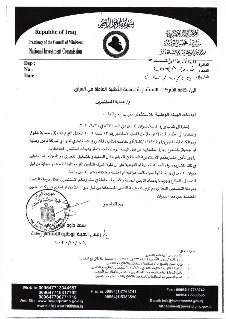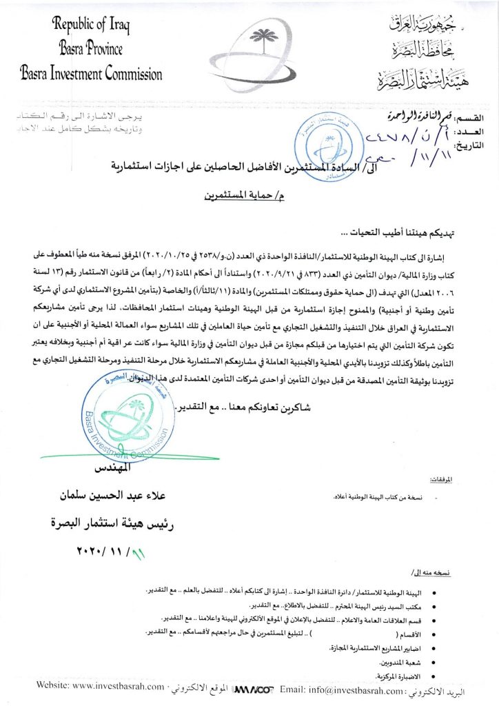 يرجى الاطلاع على كتابنا ادناه بخصوص حماية المستثمرين .