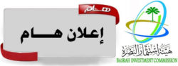تعلن هيئة استثمار البصرة عن اجراء المزايدة العلنية لبيع مواد مستهلكة (سبالت ، حاسبات ، اثاث معدني ، اثاث خشبي ، طابعات) وفق قانون بيع وايجار أموال الدولة رقم (21) لسنة 2013 في مقر الهيئة الساعة العاشرة من صباح يوم (الاحد) المصادف 14/11/2021 فعلى الراغبين بالشراء مراجعة مقر الهيئة لدفع >>>> التفاصيل